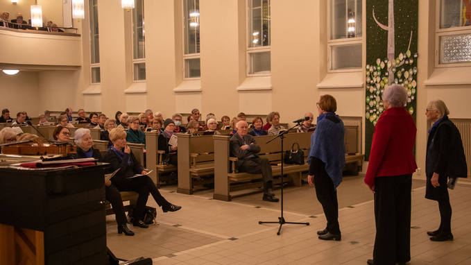Note to Self’in upea kvartetti lauloi a’capella esityksenä Suojelusenkelin, virren Soi kunniaksi Luojan ja Finlandian. Kauniiseen, moniääniseen lauluun ihastuivat kuulijat ikihyvikseen.