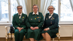 Kokouksen aluksi Kaija Vesala ja MArjatta Nykänen onnittelivat Merja Niemistä Suomen Lottaperinneliitto ry:n puheenjohjtajauudesta kaudelle 2025 - 2027.