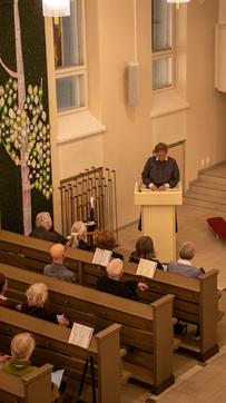 ![]() Suomen Lottaperinneliiton 1. vpj. Marjatta Nykänen | ![]() Kirkkoherra Tuija Nuutinen, iltahartaus |