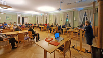 Musiikilliseen lottailtaan kevään kurjimmasta räntä - lumi-vesisateesta huolimatta kokoontui noin 70 musiikin ja maanantaina runojen ystävää. Veteraanien poikien kuoro ja orkesteri muistelivat Kanttiinin Maariaa, lauloivat Serenadin lotalle, ja Kaukaisen muiston sävelin kertoivat kiikkutuolissa istuvan vanhan lotan muisteloita.