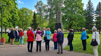 Keski-Suomen ja Piiki rykmentin mukana Kaatuneisen muistomerkille Kalevin opastamana oli matka isänmaan kallisarvoiseen historiaan. Oli hyvä lopettaa puistokävely Lottamuistokivelle ja nauttia munkkipiknik lintujen konsertoidessa puiden latvustossa. Kiitos lottaystävät kuluneesta kevätkaudesta.