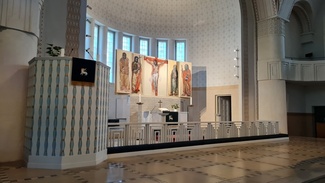 Pyhäaamun herkullisen aamiaisen jälkeen mainio, osaava kuljettajamme Jukka ajelutti meitä pitkin sunnuntaiaamun hiljaisia katuja. Eliel Saarisen suunnittelemassa Paavalin kirkossa veisasimme Suvi virren, ja saimme näin jättää meidän lottaperinteen ystävien tervehdyksen karun kauniiseen kirkkoon.