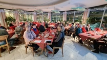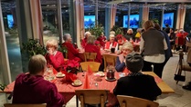 Arkihuolesi kaikki heitä laululla aloitimme tunnelmallisen ja lämminhenkisen joulujuhlamme. Saimme kokoontua lähes 50 henkisen jäsenjoukon voimin Kymen Paviljonkiin päättämään toimeliasta ja menestyksellistä yhdistyksemme 17. toimintavuotta. Seppo oli taustoittanut hienoilla kuvilla laulujen sanat, ja kauniistipa laulut salissa soivatkin.