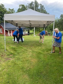 18.7.2023 Hallituksen kokous Kannuskoskella pj. Merja Niemisen kotitalo Tommolassa. Paljon asioita sisältäneen kokouksen jälkeen asialistalla oli teltanpystytysharjoitus. Yhdistykselle on hankittu Pop-Up teltta tulevia julkisia tilaisuuksia varten. Näitä ovat esimerkiksi Kannuskoskipäivä Kannuskoskella, Valkelalan Litviikkimarkkinat ja Kouvolan museokorttelin Wanhanajan markkinat.