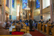 ![]() Sotilapoikakuoro ja orkesteri | ![]() Puheenjohtaja Merja Nieminen piti avauspuheen. |