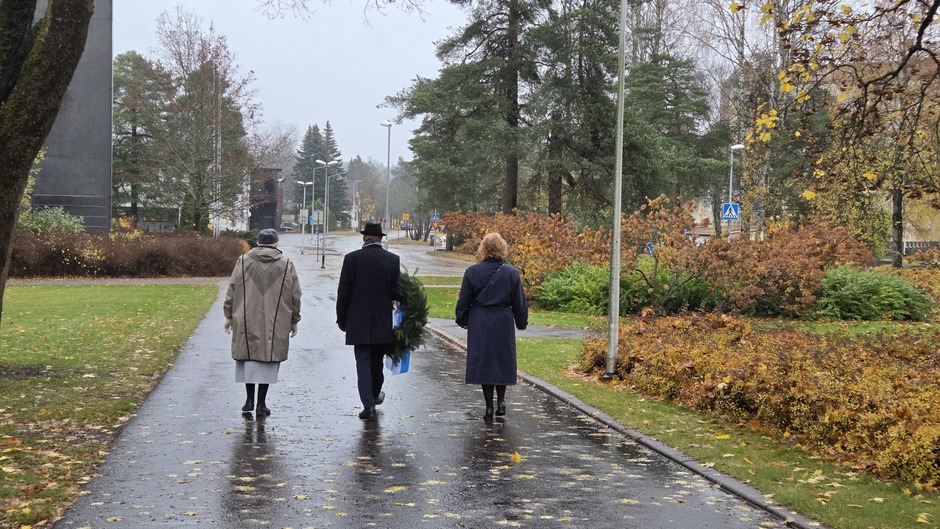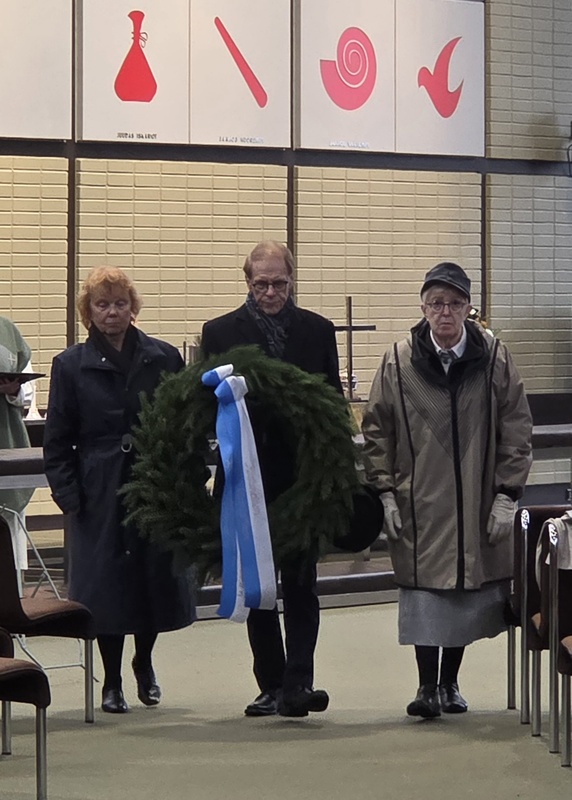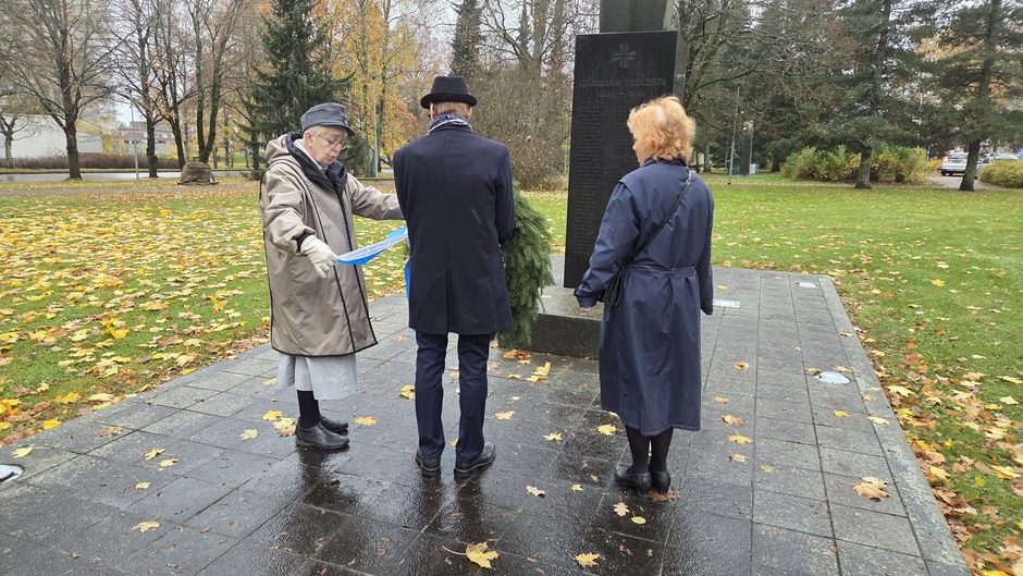 Yhdistyksemme puheenjohtaja Merja Nieminen ja varapuheenjohtaja Heini Kortesluoma laskivat seppeleen, ja Merja Nieminen piti tervehdyspuheen. Juhlavassa lippulinnassa jäsenemme Osmo Niskanen kantoi yhdistyksen lippua.