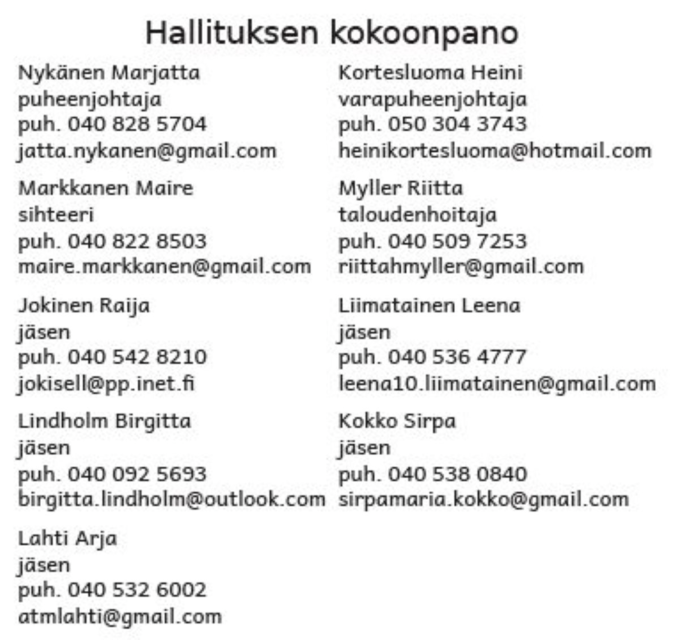 Riitta Myller, taloudenhoitaja | Seppo Liimatainen, kotisivun ylläpito ja jäsenlehti |